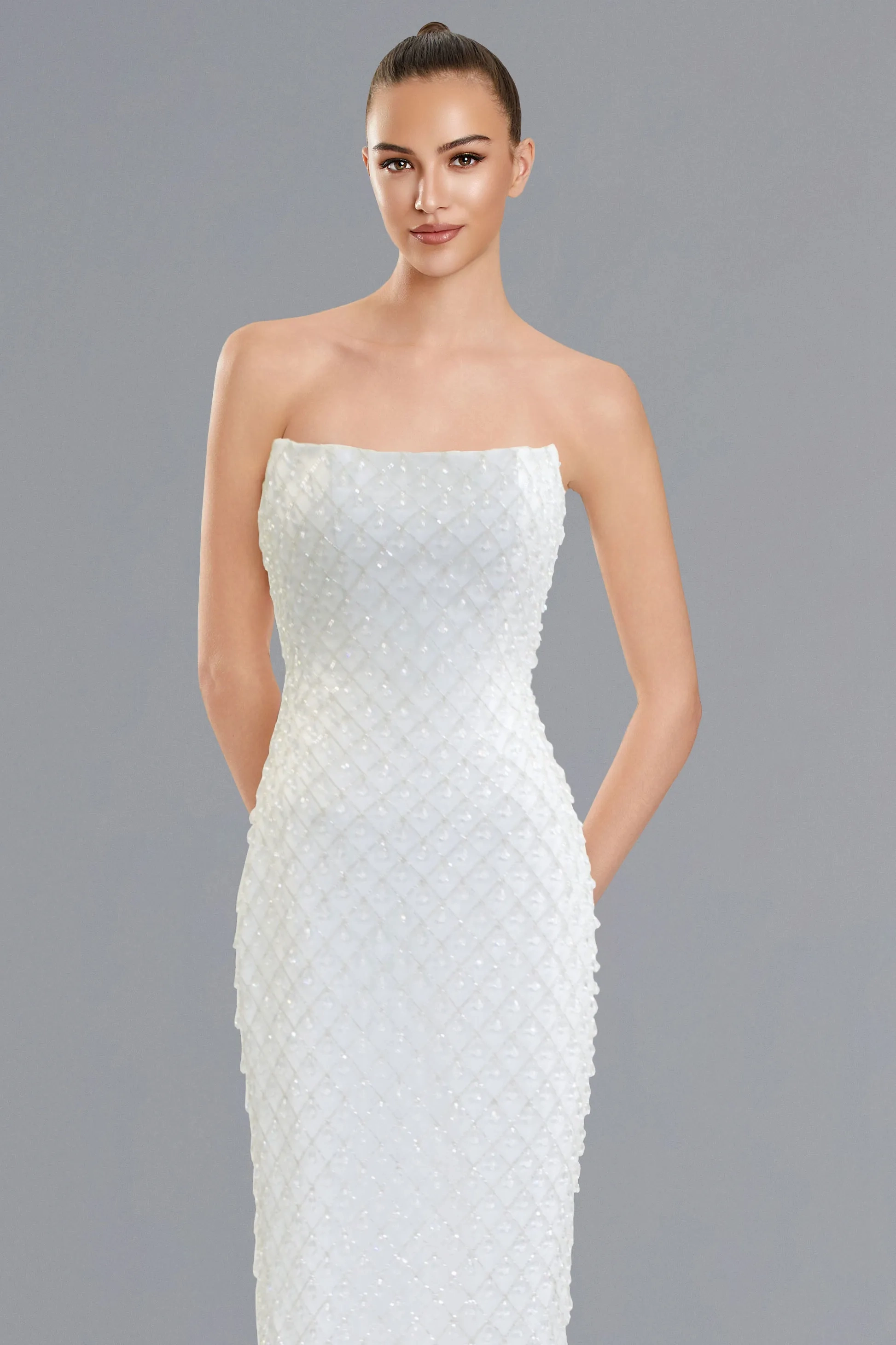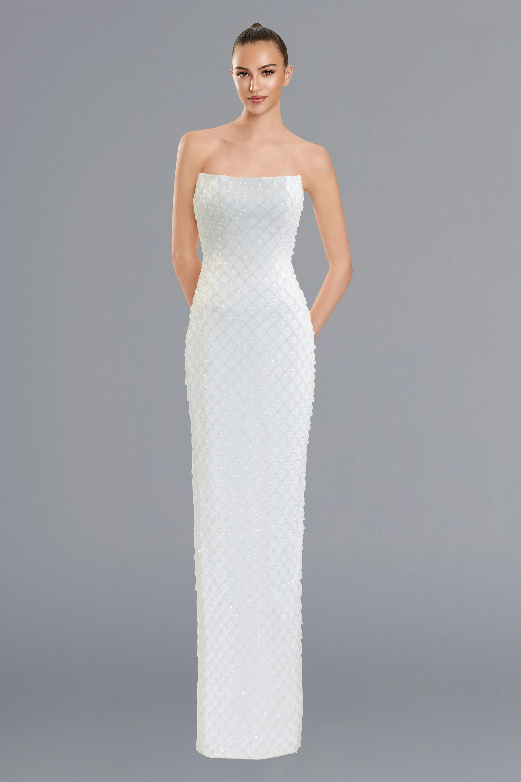 Not all dresses are found in the boutique, if you have any questions on any one specific style please contact us at 847-438-7603.